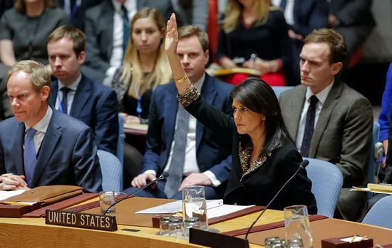 2017年12月18日,美国否决安理会关于耶路撒冷地位问题决议草案。新华社/法新