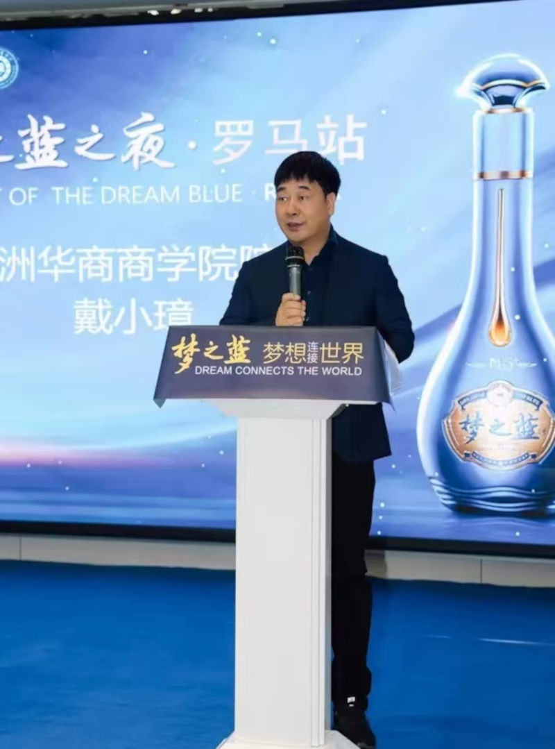 欧洲华商商学院执行院长戴小璋先生在致辞中指出:“中国品牌真正的崛起,不止是产品的输出,而是文化与情感的深入融合。我们每一位奋斗在海外的华商,都是‘梦之蓝’精神的践行者——低调、坚韧、润物无声。”