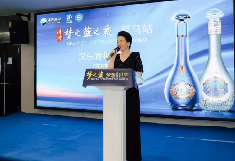 活动现场星光熠熠,气氛热烈而庄重。作为中国绵柔型白酒的开创者,洋河股份此次携“梦之蓝”系列产品亮相罗马,不仅展示了中国白酒精湛的酿造技艺,更以白酒为载体讲述了一个关于文化传承、品牌自信与中欧融合的东方故事。