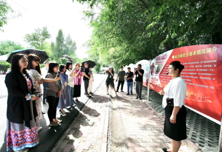 在塔城这片广袤而多元的土地上,哈尔墩社区如同一颗璀璨的明珠,闪耀着民族团结的光芒。这里,两个民族以上的家庭占比超过30%,多民族和谐共居,共同编织着一幅幅动人的生活画卷。6月25日,"追梦中华·大美新疆"2025海外华文媒体采访行走进哈尔墩社区,来自14个国家的媒体代表沉浸式体验了哈尔墩社区居民幸福生活。