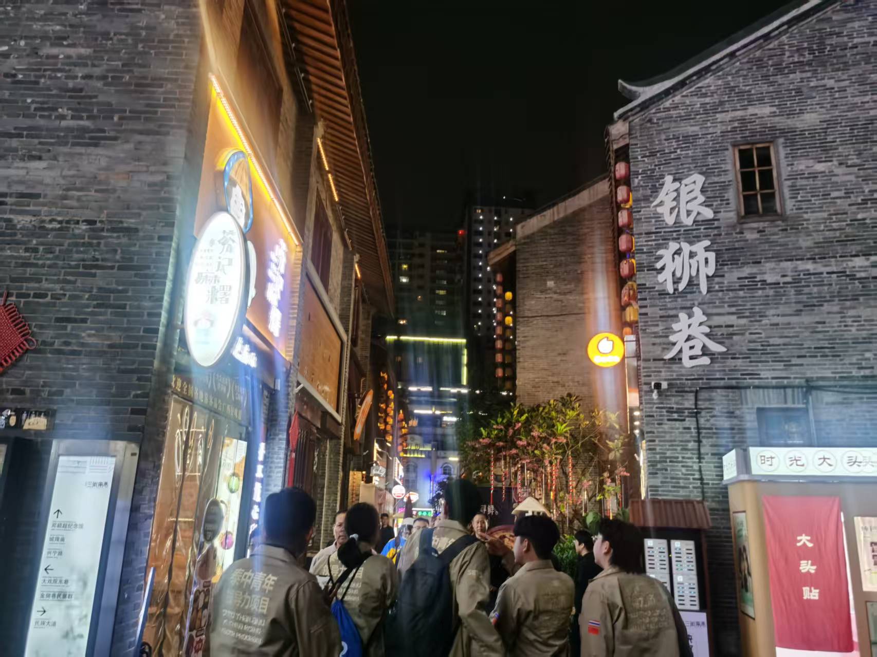 10月23日夜晚,华灯初上,邕州古城·三街两巷被璀璨的灯光笼罩,宛如一颗镶嵌在南宁夜空中的明珠。参加“向世界‘链’接柳江——2025年境外媒体探访‘一带一路’产业出海采风活动”的20余家境外媒体记者和正能量网络媒体达人,满怀期待地走进这片充满魅力的地方,开启了一场别样的夜游体验。
