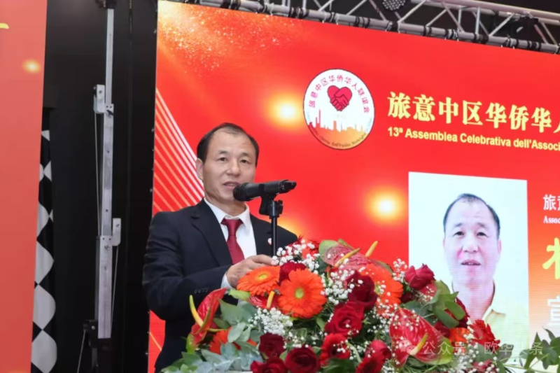 浙江省温州市侨联副主席董邦云致辞。董邦云副主席在致辞中表示,温州与意大利有着深厚的渊源,广大旅意侨胞勤奋拼搏、守望相助,为家乡发展和中意友好作出了重要贡献。希望联谊会继续团结侨胞,凝聚侨心侨力,积极推动两地经贸与文化往来,携手共创更美好的未来。