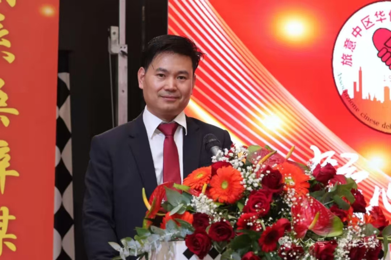新一任会长蔡焕忠发表就职讲话。蔡焕忠会长代表旅意中区华侨华人联谊会第十三届理事会,向长期以来关心和支持本会的中国驻米兰总领馆、博洛尼亚市政府、各兄弟侨团及社会各界人士表示衷心的感谢,并对莅临现场的嘉宾表示热烈欢迎。蔡焕忠会长回顾了旅意中区华侨华人联谊会的发展历程。他指出,联谊会在历届理事会的不懈努力下不断发展壮大,在服务侨胞、维护侨益、联系当地政府、支持总领馆工作以及配合国内涉侨部门开展慰侨活动等方面,都发挥了重要作用。多年来,联谊会积极为国内政府部门与意大利各机构间的交流合作搭建桥梁,赢得了中国驻米兰总领馆和国内有关部门的充分肯定与赞赏,社会影响力不断提升。对此,他代表第十三届理事会,向历届会长及会长团成员致以最诚挚的谢意。他表示,能够当选为第十三届会长,倍感荣幸,也深感责任重大。他感谢全体理事会成员的信任与支持,并表示新一届理事会将继续秉承“团结、服务、发展”的创会宗旨,进一步加强侨社建设,在服务侨胞、维护侨益、促进中意文化与经贸交流等领域作出更大贡献。他特别提到,本届理事会新增设了妇女委员会和青年委员会,旨在吸纳更多妇女精英和青年才俊加入侨团,发挥妇女的巾帼力量与青年一代的创新优势,积极融入当地社会,传播中华文化,讲好中国故事,进一步凝聚侨心侨力。