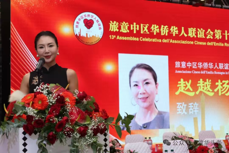 妇女部部长赵越杨致辞。赵越杨感谢欧洲各国的女性同胞汇聚于此,妇女部自成立以来,始终致力于团结侨界女性,传递关爱与温暖,积极参与侨社公益和文化活动。她表示,今后妇女部将继续发挥桥梁纽带作用,凝聚更多女性力量,携手推动联谊会各项事业迈上新台阶,共同书写旅意侨界女性的精彩篇章。