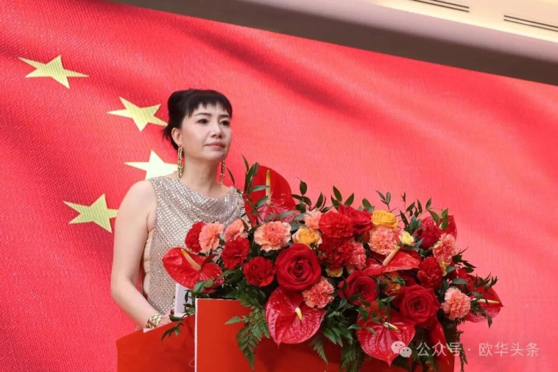 意大利托斯卡纳普拉托华侨华人妇女总会组织部部长赵秀萍宣读贵州省侨联、温州市侨联发来的贺电。
