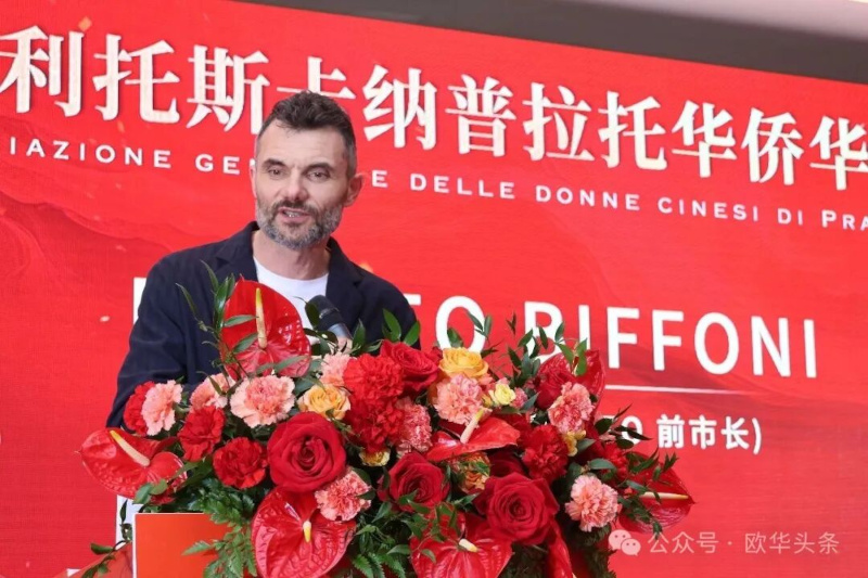托斯卡纳大区议员、普拉托市前市长Matteo Biffoni致辞。他表示,非常高兴见证这一重要时刻。作为曾经长期在普拉托工作的市长,他深知华人群体为当地经济与社会发展所作出的贡献。普拉托妇女总会的成立,不仅象征着团结与自信,也体现了华人女性在社会生活中日益重要的角色。他希望这一组织成为沟通的桥梁,在促进理解、包容与合作方面发挥积极作用。