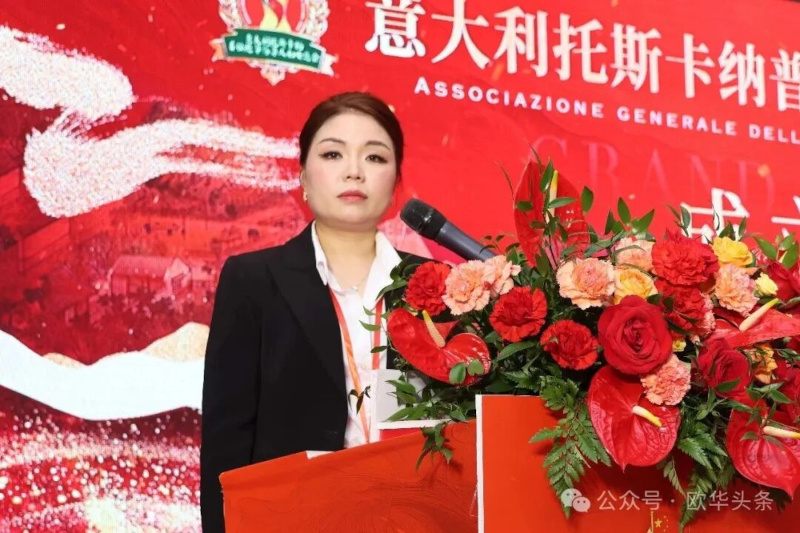 意大利托斯卡纳普拉托华侨华人妇女总会创会会长余冬红发表就职演讲。余冬红首先代表意大利托斯卡纳普拉托华侨华人妇女总会,向长期关心和支持华侨华人事业发展的中国驻佛罗伦萨总领事馆、普拉托各级政府部门,以及一直以来给予帮助与信任的兄弟侨团和社会各界朋友,致以衷心感谢和崇高敬意。余冬红表示,站在新的起点上,深感责任重大。“这不仅是一份职务,更是一份托付。”她强调,在托斯卡纳、在普拉托,广大华侨华人女性以勤劳、坚韧与善良扎根异乡,在守护家庭、发展事业、回馈社会中发挥着独特而重要的作用。她们既是母亲、妻子,也是创业者,更是连接家庭与社会、传承文化与情感的重要力量。正是这份共同的经历与情感,促成了妇女总会的应运而生。