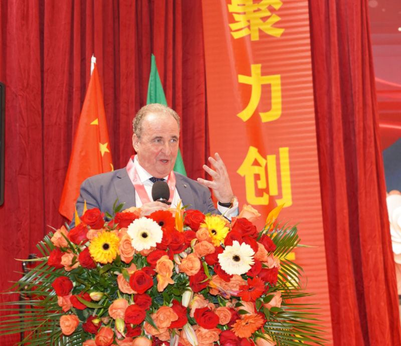 都灵市商务厅长Paolo Chiavarino在讲话中代表市政府对大会的举行表示祝贺。他感谢妇女联谊会多年来为城市多元文化交流作出的贡献,并向胡李聪会长送上市政府准备的礼物。他表示,女性象征着智慧与温柔的力量,而这种力量在推动社会进步和促进社区融合方面尤为重要。