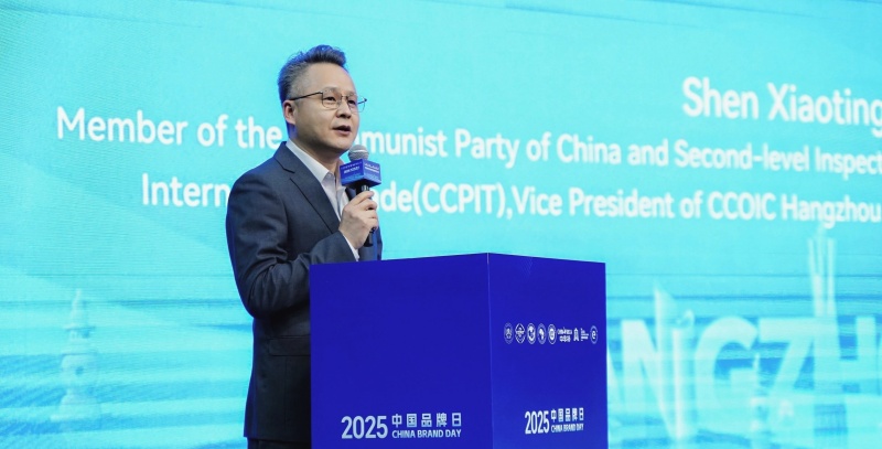 沈小艇代表杭州市贸促会发言,他紧扣国家战略,分享了杭州市贸促会在政策赋能、市场拓展、法律护航等方面构建全链服务新生态的举措和成果,并表达了深化伙伴协作、共绘中非合作新图景、携手共赴品牌出海新征程的愿景。