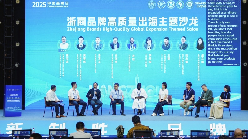 浙商品牌高质量出海主题沙龙环节则邀请了来自不同领域的八位嘉宾,包括贾春晖、姜贤正、张浙亮、吉他、李玲俊、王钢、陆志雷、虞文诺等,他们结合自身企业或机构的实践,从政府支持、文化传播、科技出海、本土合作、文化融合、市场开拓等多个角度分享了品牌出海的经验和见解,为参会者呈现了一场思想的盛宴。