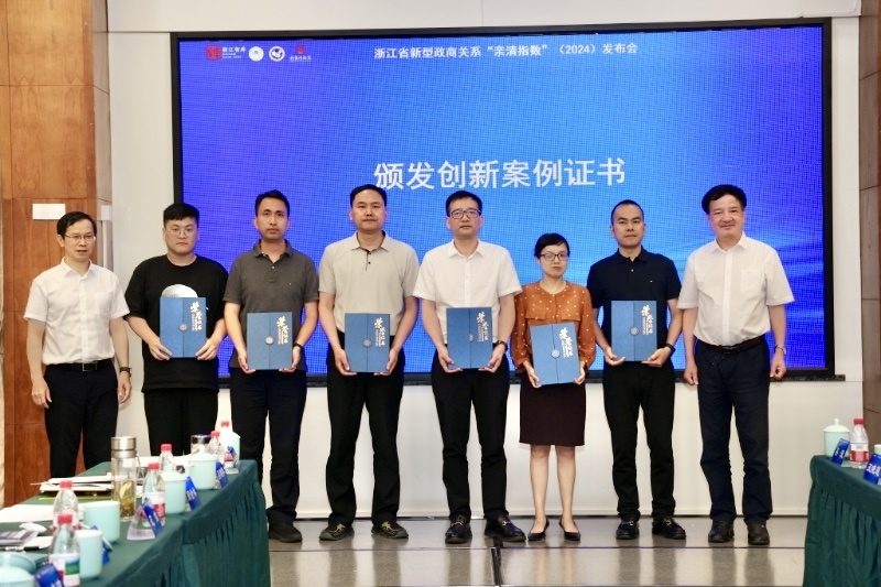 会上同时还发布了五个优秀“亲清政商关系创新案例”。为总结提炼典型经验做法,研究探索具有中国特色、时代特征、可推广借鉴的亲清政商关系发展模式,4月初,浙江工商大学浙商研究院和潮闻天下传媒(浙江)集团有限公司联合发起面向全国范围的“亲清政商关系创新案例(2023)”征集。活动得到广泛响应,经专家评审,义乌市的《涉企问题高效闭环解决机制运行实践》、余姚市的《构建亲清中介服务新生态》、杭州市富阳区的《创新亲清政商关系“富阳模式” 打造营商环境最优区》、嵊州市的《创新深化“企情日记” 赋能“亲清警企 同心同行”法治化营商环境》和山东省东明县的《黄河首邑菏心润,政商清波明快涌》等获评优秀案例,义乌市政务服务管理办公室副主任吴潮华、余姚市营商环境建设办公室副主任史尚杰、杭州市富阳区工商联党组书记郑金林、嵊州市公安局经侦大队长张锋和山东省东明县行政审批服务局局长王建昌作为代表到现场发布,从不同侧面展现了各地在构建政商关系实践中的特色亮点和经验启示。