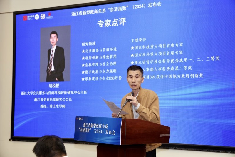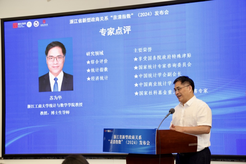 发布会上,浙江省社会科学界联合会主席盛世豪、浙江大学公共服务与营商环境评价研究中心主任胡税根、中国人民大学公共管理学院教授刘鹏、浙江省发改委原副主任谢晓波、浙江工商大学统计学院苏为华教授等专家通过线上线下作了专业而精彩的点评。专家们高度评价报告的 “精”“新”“准”“实” 特点,肯定其连续七年为浙江政商关系建设提供智力支持。同时建议迭代完善指标设计,加强数据纵贯分析,挖掘长期趋势与影响机制;聚焦民营经济出海、数字化治理等新趋势深化研究;推动对策建议与地方实践结合,提升成果转化效能。