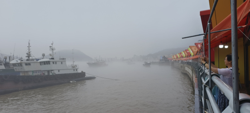 离开舟山市美术馆,记者们驱车来到被誉为世界三大渔港之一的沈家门渔港。由于是禁渔期,渔船都停在了岸边,虽然大雾锁港,能见度很低,但港内整齐排列的渔船还是让人感到震撼。
