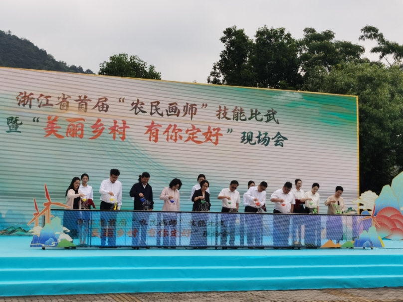 5月24日,浙江省首届“农民画师”技能比武暨“美丽乡村 有你定好”现场会在定海区干览镇新建村举行。