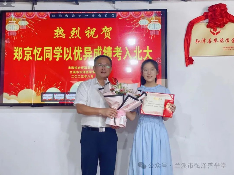 在热烈的掌声中,弘泽善举奖学金启动揭牌仪式庄严举行。随着红绸徐徐揭开,“弘泽善举奖学金”的牌匾正式亮相,象征着兰溪市弘泽善举堂对教育事业长期投入的新里程碑正式开启。该奖学金将精准聚焦两类群体:一是成功考入国家“211工程”重点大学的本地优秀学子;二是品学兼优的外来务工人员子弟,旨在为这些在求学路上奋力拼搏的青年才俊提供切实支持,减轻其经济负担,助力其学业腾飞。