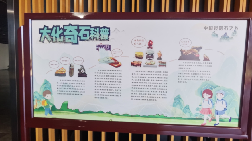 “这些奇石并非人工雕琢,而是天然形成。”讲解员介绍道,大化被誉为“世界长寿之乡”“中国奇石之乡”,馆内所藏大部分为大化彩玉石,质地细腻、色彩绚丽,以“形、色、质、纹”四绝著称。每一块石头都凝结着亿万年的地质变迁与自然艺术。