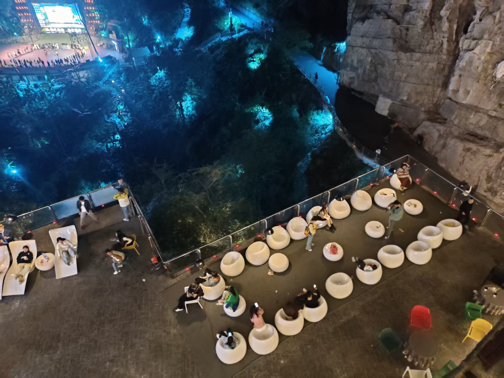 在开发这一项目的广西悦投文旅集团董事长何志坚介绍,国庆期间,悬崖书店人山人海,堵车5公里,还有天坑万人合唱《后来》,那种感受真的很震撼。他说:“我们通过发展乡村旅游,村民变成了工作人员。游客来体验民族文化,村民也能增加不少收入。”