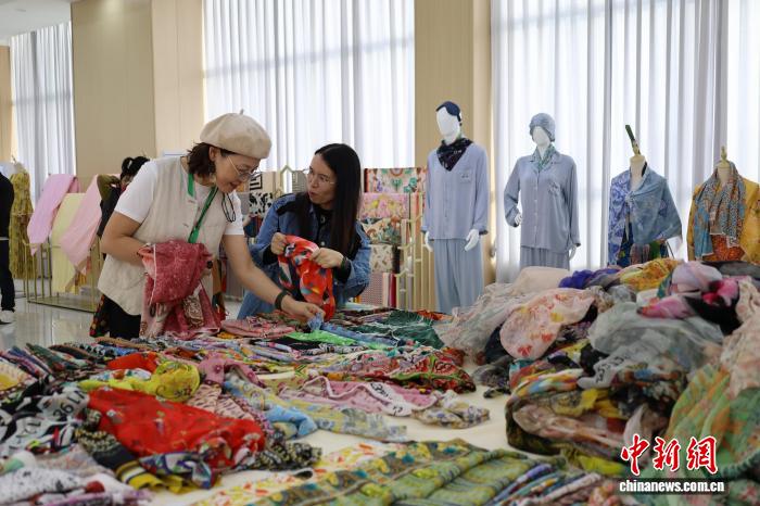 图为真丝时尚单品吸引境外媒体关注。林馨 摄