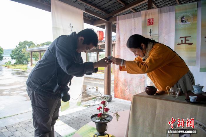 图为海外媒体人学习茶礼。中新社记者 翟李强 摄