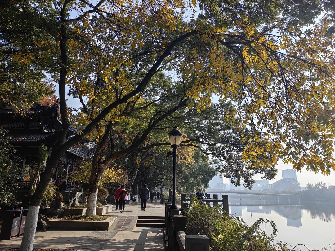 婺江的晨雾还未散尽,轻纱似的笼着江面,我踩着2025浙江省侨联文化交流和信息传播工作会议的余温,随身旁博学的友人踱入金华的肌理里。江风裹着湿润的水汽漫过石栏栅,垂钓者的浮标在镜面般的江波上轻轻颤动,晨练老人的太极招式柔缓舒展,揉碎了金红的晨光。不远处的树荫下,几位银发长者抚琴放歌,悠扬的曲调顺着柳丝缠过来——这不是刻意妆点的风景,是市井日子里浸出来的暖,漫进人心底。