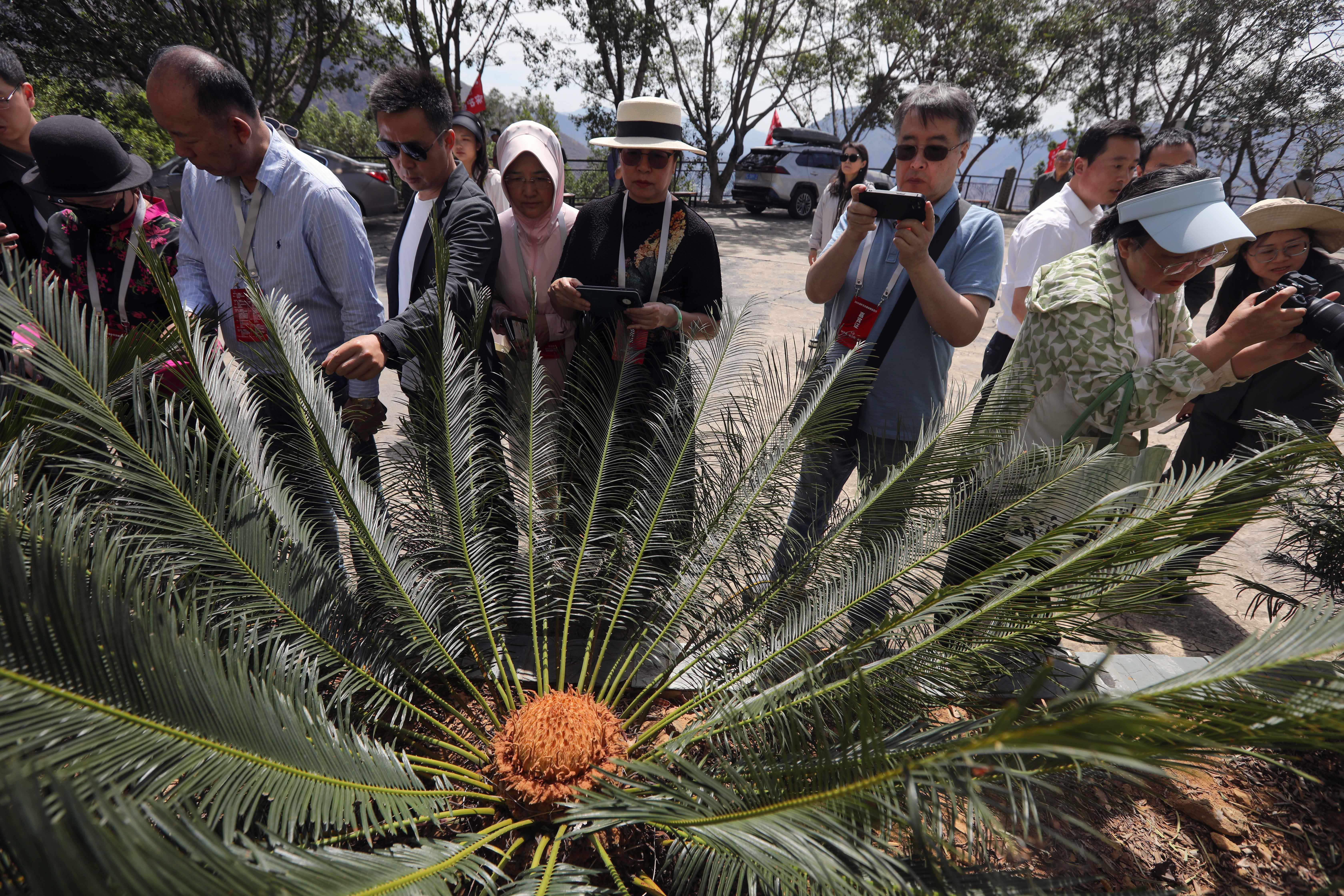 4月9日,海外华文媒体代表观看开花的攀枝花苏铁。王磊 摄