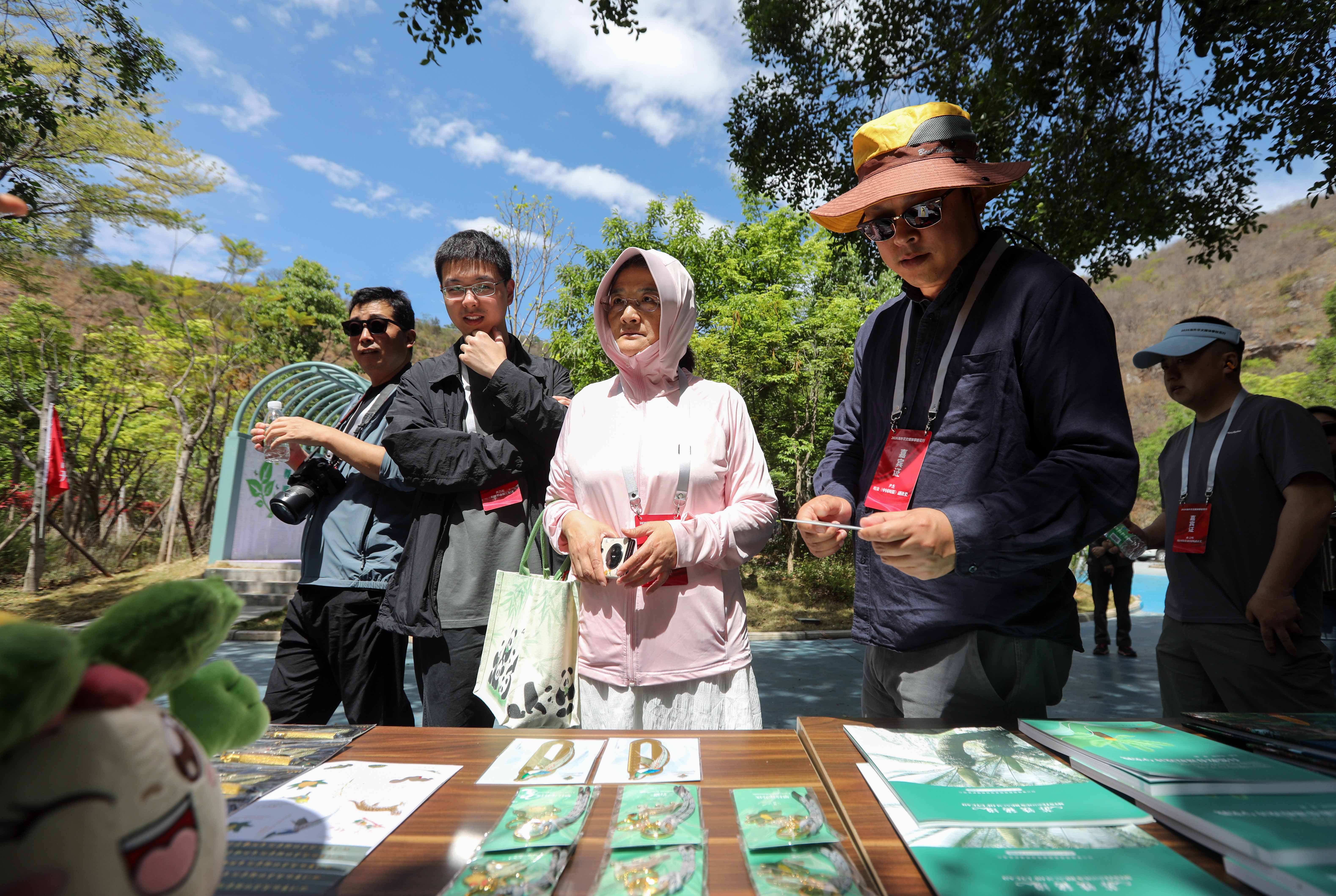 4月9日,海外华文媒体代表观看攀枝花苏铁的文创产品。王磊摄