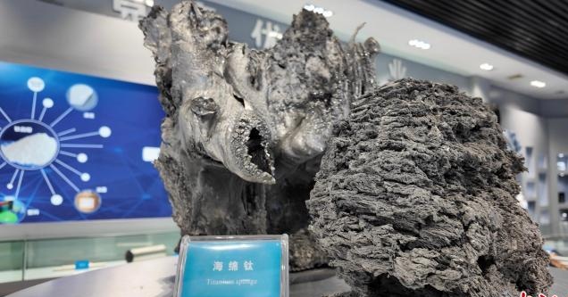 4月11日,四川攀枝花,攀钢集团(攀枝花)钛金属材料有限公司展出的海绵钛。杨予