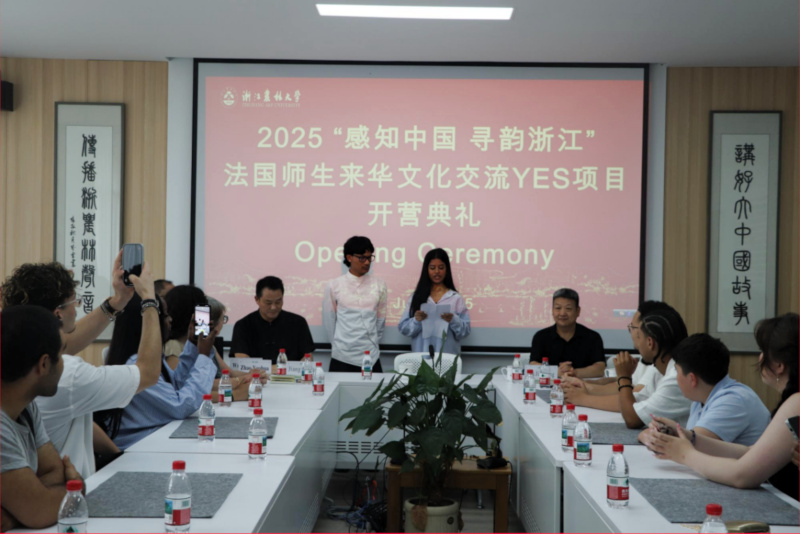 6月25日,由中国教育国际交流协会、浙江省教育国际交流协会指导,浙江农林大学承办的2025“感知中国——寻韵浙江”法国师生来华文化交流YES项目正式开营。本项目旨在搭建起世界青年交流平台,通过参观历史文化名胜、体验中国传统文化、感知中国国情、中法青年学生交流互动等活动,使法国师生深入了解中国的历史文化和中国式现代化的发展成就,增进中法两国文明互鉴。浙江农林大学副校长吴家胜出席仪式,学校国际处处长王磊、国教学院院长赵有华参加活动。