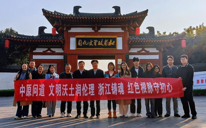 会后,浙商研究团队一行结合习近平总书记视察河南时关于"优秀传统文化是中华民族的根和魂"的重要论述开展"寻迹溯源 研学中原"主题党日活动。在河南博物院,党员们参观了"中原古代文明之光"基本陈列,重点观摩了贾湖骨笛、莲鹤方壶等承载中华伦理思想的珍贵文物;走进位于巩义市笔架山下的杜甫故里,通过实景教学《茅屋为秋风所破歌》创作场景,深刻感悟诗圣"穷年忧黎元"的家国情怀;最后,调研全国爱国主义教育示范基地、豫商家园——康百万庄园,透过明清商帮"留余"匾额等实物史料,系统学习豫商"以德治商"的伦理准则。