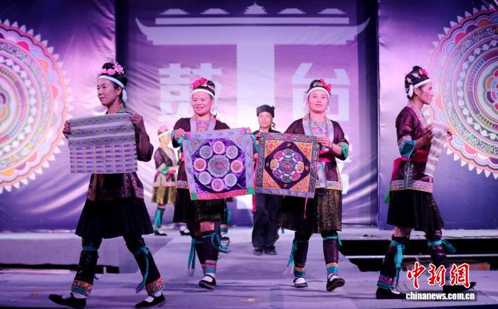近日,广西三江侗族自治县独峒镇“画里侗乡·非遗传承”鼓楼T台秀在三江鼓楼坪精彩上演,三江农民画、侗族器乐、侗族刺绣、多耶等非遗瑰宝与时尚T台激情碰撞,为观众献上一场民族与潮流交融的视听盛宴。图为活动现场。龚普康 摄